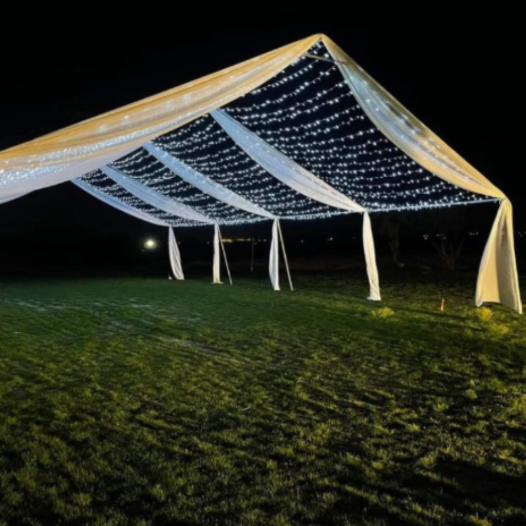 Options: Clear tops, tarp covers, twinkle lights, draping